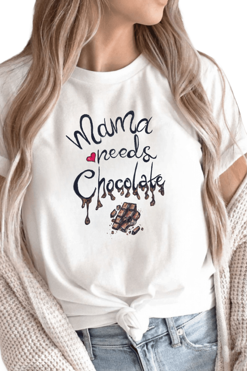 Grafica unică cu textul “Mama needs chocolate” și tableta de ciocolată topită adaugă personalitate și umor oricărei ținute. Fie că îl porți acasă, în oraș sau îl oferi cadou, acest tricou aduce bucurie imediată.