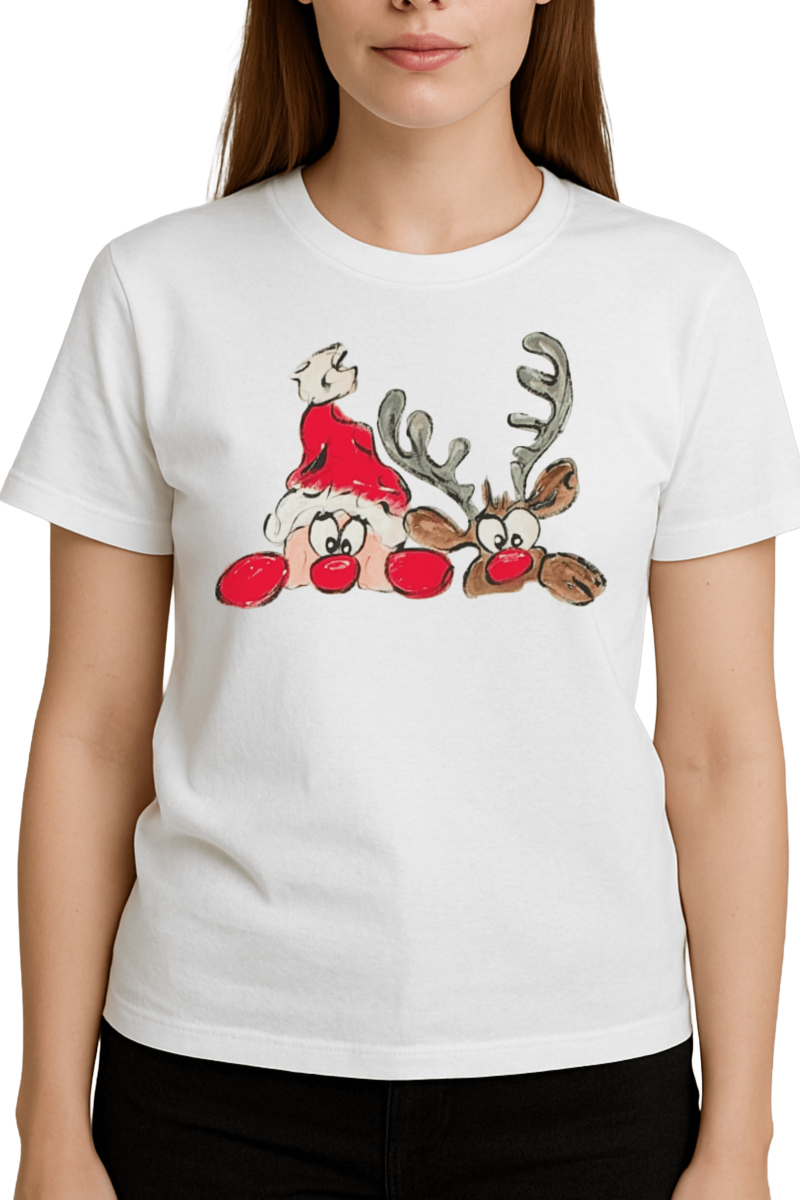 Tricou pictat Moș Crăciun și Renul